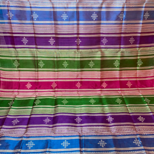 Each Berhampuri silk saree is handwoven with precision, making it not just attire but a treasured heirloom. Its soft drape, luxurious finish, and vibrant hues reflect the legacy of skilled weavers of Odisha.