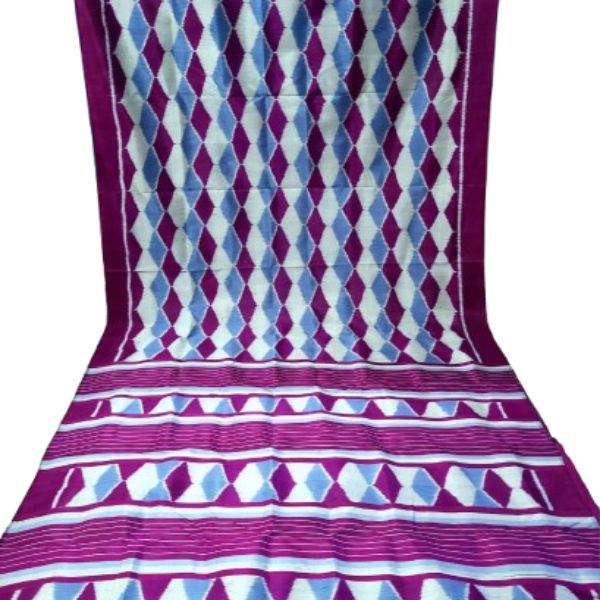 This Handmade Khandua Mulberry Silk (Pata) Saree is an exquisite masterpiece from Odisha’s age-old weaving heritage. Woven by skilled artisans, the saree highlights an exclusive 4-ply multicolour diamond motif across its body, a symbol of elegance and intricate craftsmanship. Its matching silk (Pata) anchal and blouse piece complete the ensemble, giving it a regal and graceful appeal. Renowned for its soft texture, natural sheen, and lightweight feel, this saree is perfect for weddings, festive occasions, traditional ceremonies, or as a timeless heirloom piece. The use of fine mulberry silk and the detailed handloom weave make it not only a garment but also a representation of Odisha’s cultural legacy.